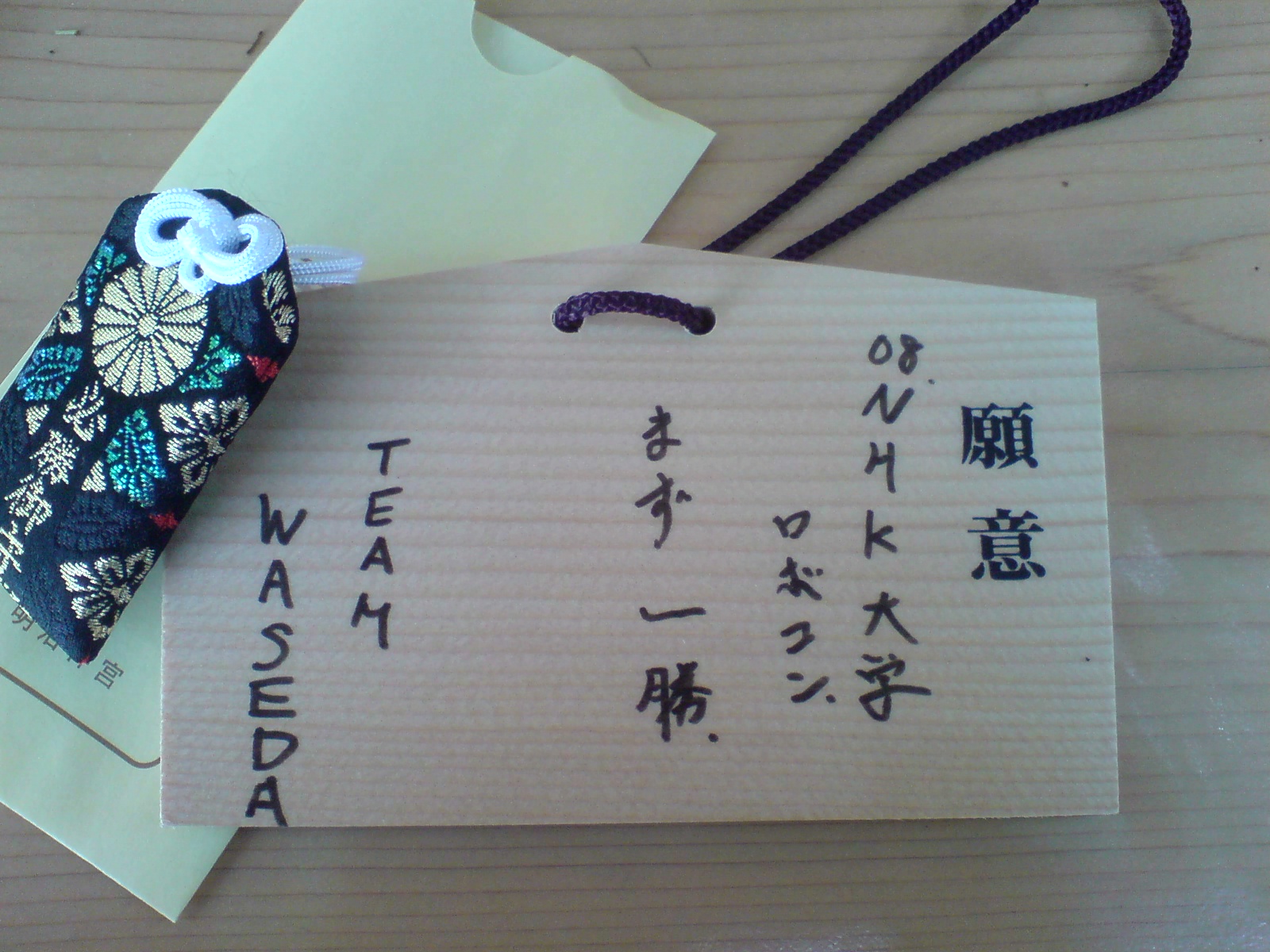 ロボコン。終わりました。 もう4日ぐらいたってますが。 色々書くことあるんですが取り急ぎ結果のご報告のみさせていただきます。 準優勝でっした。 いやまじで。まじで。 一番びっくりしてんの多分俺。 応援・協力本当にありがとうございました。 WMMCメンバー本当にお疲れ様でした。 すみません。 レポートとかゼミ課題とか個人的に他プロジェクトの作業で死にそうなのでこれだけ…。 レセプションにもでないで1人暮らしのメンバーの家に泊まりこんでレポートやらゼミ課題やらこなしたのに。 その後も…。 なんでこんないっぱいいっぱいやねーん。(←飛行機も作ってるから。) 週末にはもうちょっとちゃんとした記事書く予定です。 あ。 効果絶大だった明治神宮へは昨日お礼にいってまいりましたよ。
