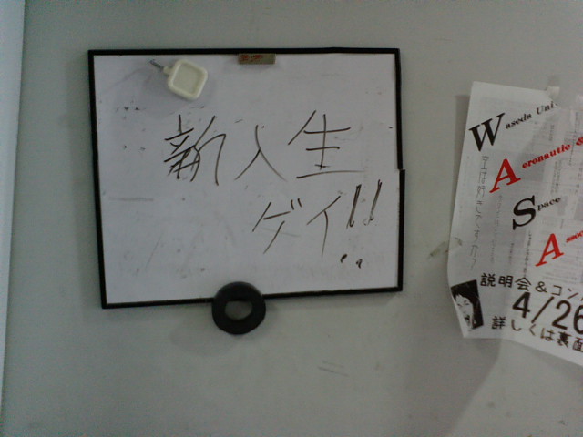 1年生のみなさん入学おめでとう!。 そして観に来てくれてありがとう♪。 授業がはじまって1週間、そろそろ大学にも慣れてきたころでしょうか?。 我々WASA(早稲田宇宙航空研究会)・メカトロプロジェクト。 がどんな活動をしているかというと。 かわさきロボット競技大会に参加したり。 ROBO-ONEに出場すべく機体を製作したり。 理工展(早稲田大学理工学部の学祭)に参加したり。 目白祭(日本女子大の学祭)に参加したり。 みんなで花見をしたり。 みんなでキリストの誕生日を祝ったり。 みんなでスキーに行ったり。 していました。 が。 今年からはなんと!。 !!NHK大学ロボコンに出場します!! 昨年末の書類審査に早稲田大学として始めて通過し、 現在2次ビデオ審査の結果を待っているところです。 興味わいてきました?w。 すこしでも興味を持ってもらえていたら、是非一度覘いてみてください。 やっぱり実際の雰囲気を感じてもらうのが一番だと思うので。 4月いっぱいの月・金は大久保キャンパス内理工ラウンジ2階(51号館と60号館の間)で。 そして新学生会館9階・E937号室にある部室で。 さらに4月26日に大久保キャンパス集合で行われる新歓コンパで。 皆さんをお待ちしています。 基本的な活動は月・金の18:00~となっていますが、そこらへんはかなり自由。 人によって授業時間も違うので、学年や機体をつくるチームによって活動時間は色々です。 授業の空き時間に遊びにきたり、みんなでレポートを書いていたりもしますw。 なので時々人がいないのはご愛嬌♪。 ちなみに早稲田・日本女子大でのインカレサークルで、現在のメンバーが、 新3年生が 11名 (男性5、女性6) 新2年生が 10名 (男性6、女性4) です。 以外でしょうか?w。 性別・学部は関係ありません。是非一度遊びに来てください。 |