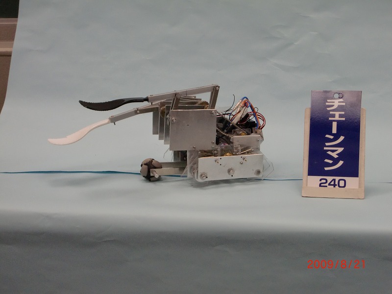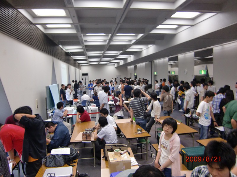 午前9時集合、2年作業開始。ETOを生け贄に捧げてチェーンマンのみを製作することになっていましたが、最も大きな問題として、部品が足りませんでした。。。でも、チェーンマンが骨組み状態から形になりました!ほんとかよって感じでした。所要時間にして13時間。 1年生たちはというと、色々やってました。というか自分自身あまり見ている余裕がなかったので。。。ただ、何となく形になっていた機体が実際に形になっていて、いい感じでした。しかし、完成ならず。 3年機・・・realizeできませんでしたw 電装部、スピコン(スピードコントローラ、モーターの回転数をプロポに合わせて制御するやつ)を製作していたのですが、様々な問題により非力で使えないという結論に。。。 ということで、21日、かわさきロボット大会B予選に突入! と威勢よくは行かず、学生会館があく朝8時から作業開始。12時に1年機「メカとろ~ん」「もるごん」は出発。先に現地へ。12:30、残りの「ピクリンさん」、2年機「チェーンマン」が出発。約70分で会場入り。 さあ、まずは審査を通過!とは行かずに、いろいろ取り付けとか。 下のは会場の様子。 でも、こんなところでまともな作業できるわけもなく。。。とりあえず本日の成績。 「チェーンマン」 機体の当日審査通過。 B予選は棄権。 敗因は動軸棒がアルミ製で強度不足のため復旧不可能なまでに曲がったこと。 「メカとろ~ん」 B予選、最長記録で通過!周りからあつい拍手を受ける。 A予選に進出。 「もるごん」 当日審査通過。 B予選出られず B予選敗者復活戦に挑戦、完走できず敗退。 「ピクリンさん」 当日審査通過ならず。 サイズの規定に引っかかりました。 下は我らがチェーンマンです。 と、なかなか長い日々が続いていました。明日はA予選です。メカとろ~ん、がんばれ! そういうわけでした。 競技後、部室に帰りました。帰宅ラッシュで込んだ電車に金属の固まりをもってw で、そのあと急速にメカとろ~んの改善。実はB予選を通過したときも脚が故障で結構つらかったんです。その問題点を一挙に解消、動作不良のスピコンと受信機を新たに取り付けターンエンド、明日の、まずは受付を通過します。1回は勝ってほしい! 個人的には、色々他チームの構造を眺めつつ来年の構想、いやまだ完成していないETOの機構上の問題点の洗い出しと構想を練っていました。凄い機体とそうでもない機体が入り交じっていて、やはりおもしろい大会です。ですが、チェーンマンの足回りがひしゃげたときには結構ショックがありました。かなり張りぼてな状態とはいえ、一応完成していたからです。幸いにも去年のように1年生の機体が機体の製作以前の問題(去年は提出書類と機体の構造が異なるところで当日審査を通過できる1年機がありませんでした)で出場できないような事態はなかったので、その点は運営上よかったと思います。脚の突然の変更は厳しかったですが、なんとかなりました。 さあ、明日もかわさきだw 7時に家を出る? 間に合わせねばw それでは、この辺で。 稲葉 PR