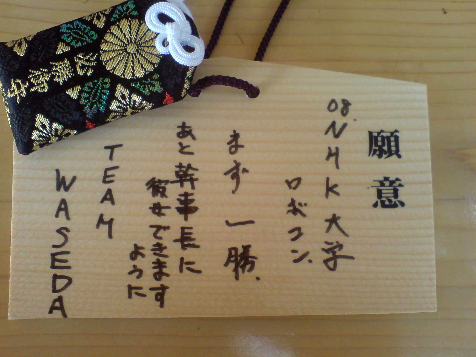 気づいたら今日がNHKロボコン当日です。 本戦は明日ですが。 製作記とかぜんぜん書いてる余裕ありませんでした。 あと3時間もしたら家をでて学校に向かいます。 学校に10時。会場に11時前に着く予定。 近いw。 というわけでビデオ審査通過記事の次は出発日の朝です。ひどい。 今日までを思い返すとえらい長かったですがえらい短かったです。 つらかったですいろいろ。 協力いただいた、 工作室・理工事務所の方々、諸先輩方、WASA他プロメンバー、HONMONO、協和の皆様、 本当にありがとうございました。 そして誰よりWMMCの皆様お疲れ様でした。この場を借りて感謝を。 春休み以降。特別に許可をいただいて。 ラウンジやらホワイエやらを占拠して作業し連日閉門時間まで。 最終週の土日には63号館の大教室なんか使わせていただきました。 まじすげーーー。 その様子なんかは終わったらまとめてUPしたいと思います。 さてさてそんなわけですが。 木曜日に機体を搬送してしまったため。金曜日は荷物まとめと充電のみ。 加えて授業が2、3限のみ。 だったので。ふと思い立って会場を下見してきました。近いから。 めっちゃ設営の最中でした。 あとセンターの前の道に前日送り出したトラックおよび同じ型のトラックが6台ぐらいいて笑った。 そして帰りがけにとなりの明治神宮に寄り、祈願と絵馬を描いてきました。 あと必勝お守りも買った。 志ちっちゃいとかいうな。 正直機体は大満足っていうところまでもっていけませんでした。 人手と時間と場所不足は否めなかった。あと個人的な実力不足とか。 でもわりとやるじゃん。ってぐらいにはなってるはず。 自分的には勝負に勝てなくてもちゃんと動いてくれたら満足な気もします。 まあでもせっかく出られるのだし。 たくさんの人に協力、応援いただいたし。 できれば勝ちたい。 初出場・初優勝なんてかっこいいじゃないか。 でもまあ一回ゴヴィンダ決めるか決勝トーナメントいけたら万々歳だな(どっちゃねん)。 問題は相手との戦略の相性次第なきもするし。 要は自分のくじ運次第か…。 選手宣誓は引きませんように…。 さぁ!。あと2時間実験のレポート書いたら出発しよう!。 今日の夜はリーダー会議とゼミ課題とエンプラ課題だ!。 あ。そういえば20分で書いた川崎の審査が通過してました。 でも出ないかも。 いやなんか隙間あいてて気持ち悪かったからさ。 どうせなら面白いこと書こうと思って。 PR ![]() ![]() |